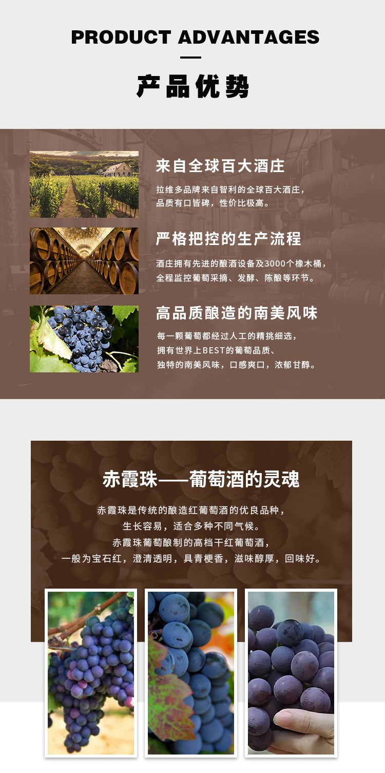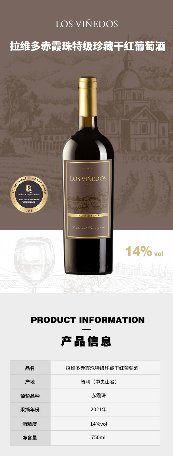 拉维多赤霞珠特级珍藏干红来自世界七大葡萄酒海岸之一的智利,单宁如天鹅绒般丝滑、香气丰富干爽、余味浓郁、橡木桶中陈酿12个月。赤霞珠是葡萄酒的灵魂,价格亲民,性价比很高,不管日常品饮,还是朋友聚会,都是很好的选择。