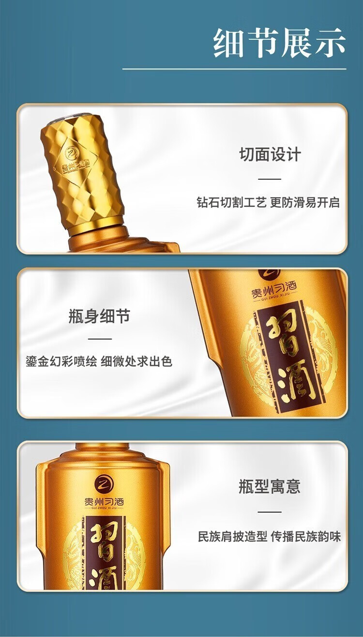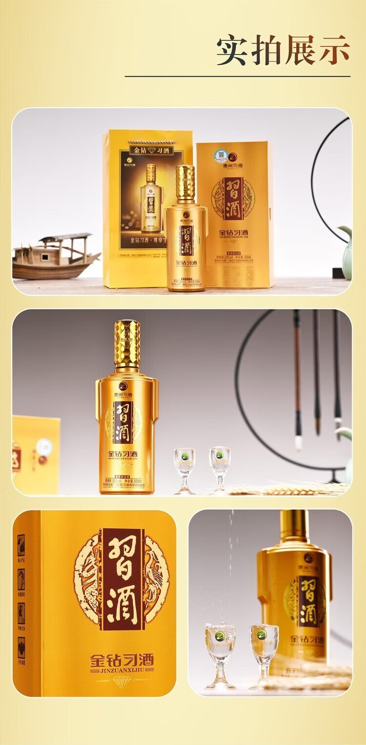 习酒金钻是贵州茅台酒厂(集团)习酒有限责任公司出品。秉承中国酱酒的传统酿造工艺,采用纯粮固态酿造。具有陈香绵柔、舒适幽雅、温和协调等特点。价格亲民,高性价比,加上高端的包装设计,无论是自饮、朋友聚会还是礼赠,都是极好的选择。