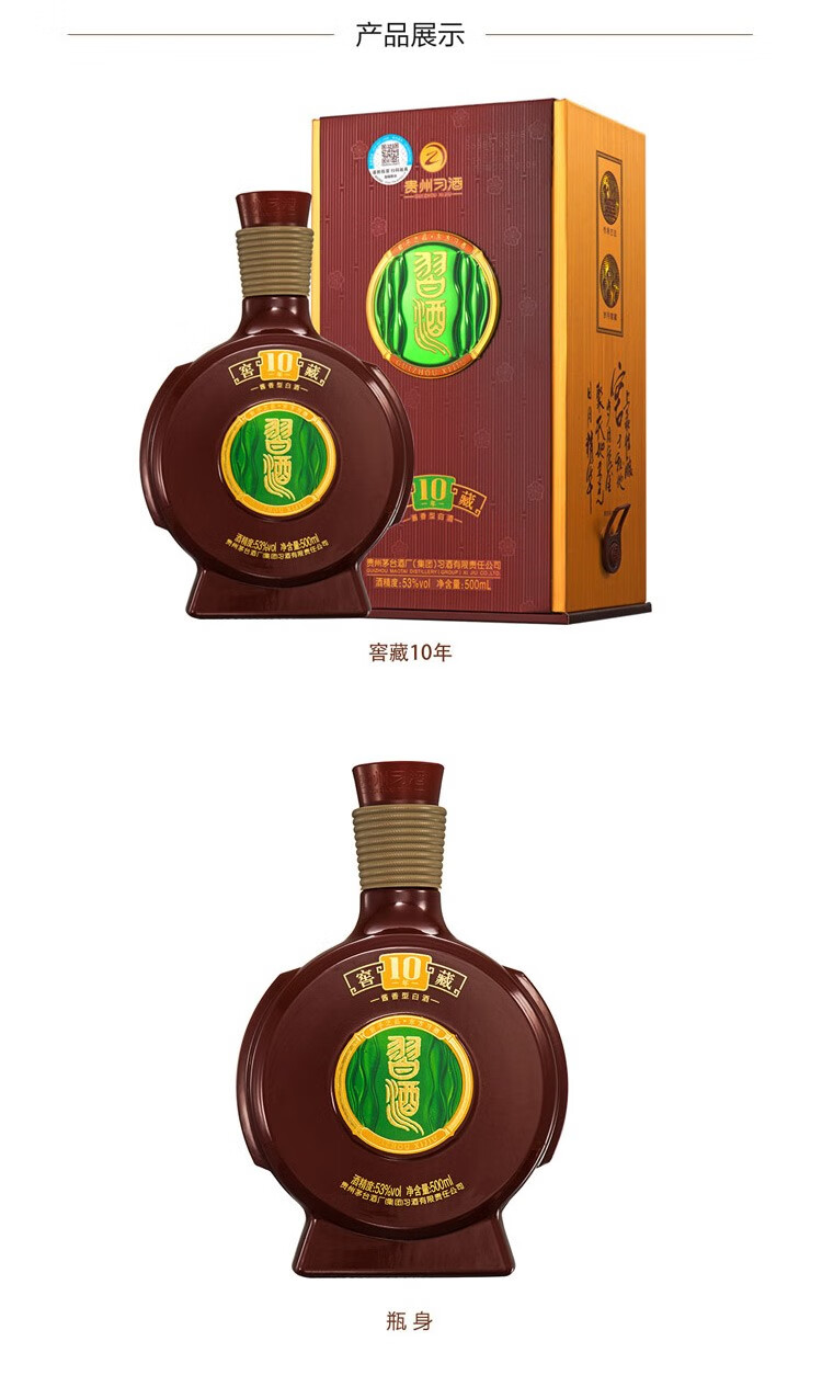 习酒窖藏十年是贵州茅台酒厂(集团)习酒有限责任公司出品。秉承中国酱酒的传统酿造工艺,闻香舒适,口感醇厚,细腻,香味浓郁,回味悠长。成为众多消费者首先,无论是商务宴请,还是朋友聚会,都是餐桌上的亮点。