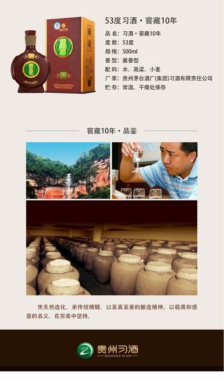 习酒窖藏十年是贵州茅台酒厂(集团)习酒有限责任公司出品。是该品牌旗下的佼佼者。源于对传统的坚守与对品质的执着。
