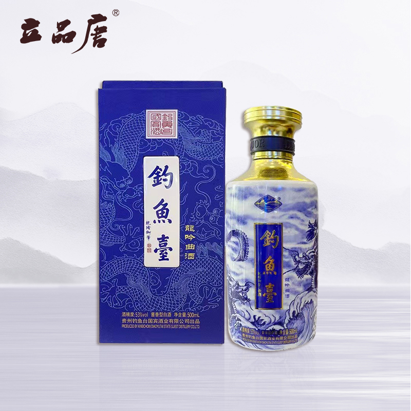 龙吟曲酒是贵州钓鱼台国宾酒业有限公司出品。钓鱼台品牌标识源于乾隆御笔“钓鱼台”,以高品质为品牌内涵,具有深厚的文化底蕴和卓尔不群的品味。品牌文化理念‘国之气度,和而不同’与广东的兼容并包,开放传承的文化相呼应。以画作《二龙戏珠》为瓶身图案。寓意拥有者飞龙在天,富贵吉祥。