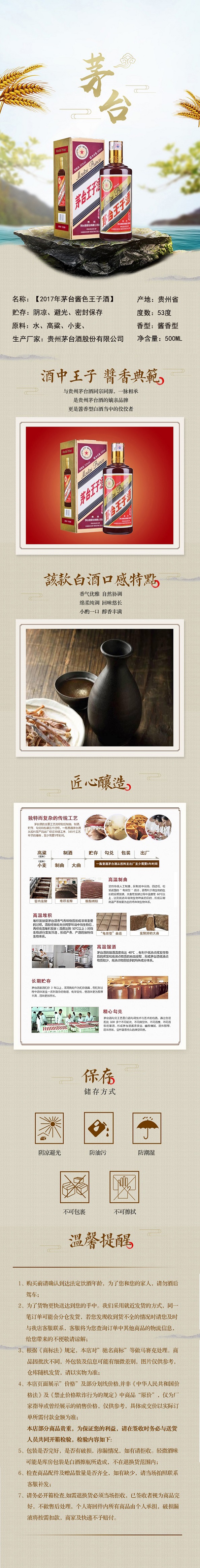 茅台酱色王子酒是茅台酒股份有限公司出品,采用传统的大曲坤沙酿造工艺,具有酱香突出、口感醇厚、色泽微黄、晶莹剔透的特点,适用于家庭聚会、商务宴请、节日赠礼等场合。
