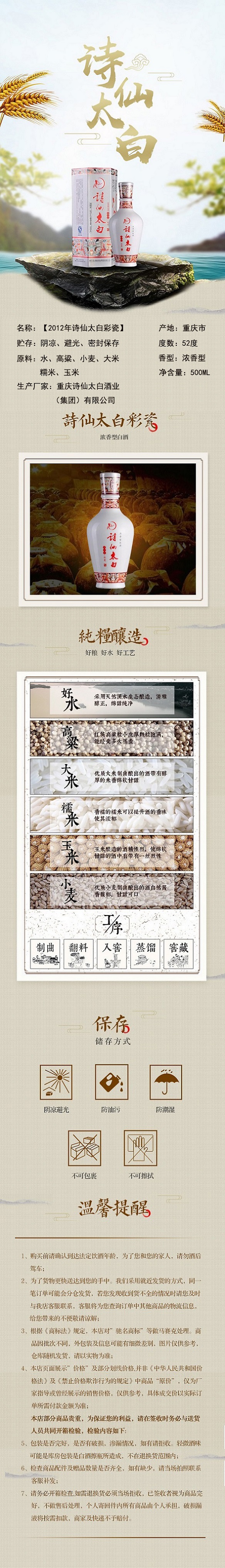 12年诗仙太白彩瓷500毫升