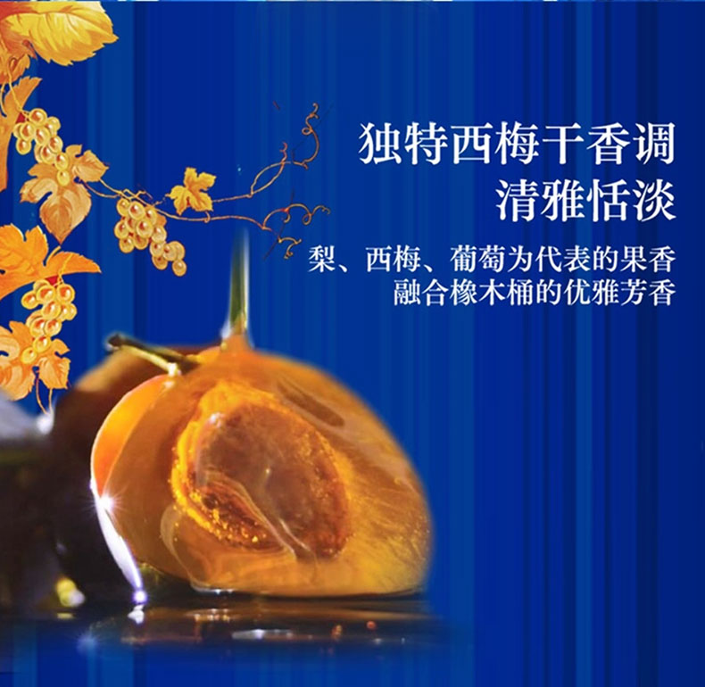 闻香:拥有丰富的果香,梨子和梅子的果香,香草荚和焦糖葡萄透露着奇异风味,还夹杂着甜蜜的没药树、杉木和细纹橡木的独特木香