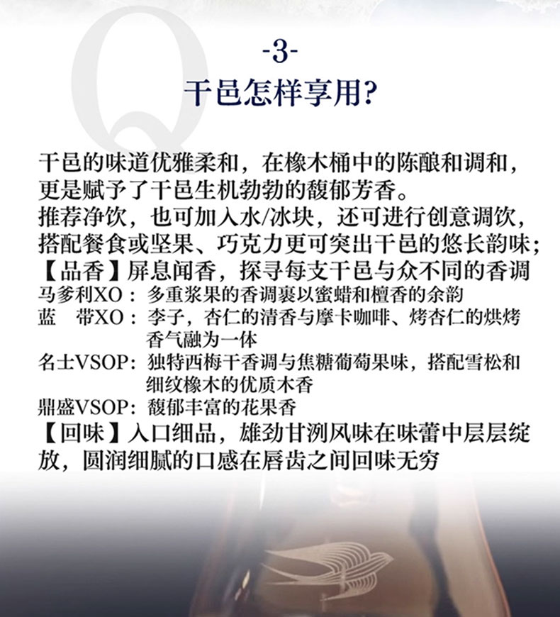 马爹利名仕是法国保乐力加集团出品,它的诞生是为了向马爹利的经典致敬,同时也是为了传承马爹利的奢华精神。