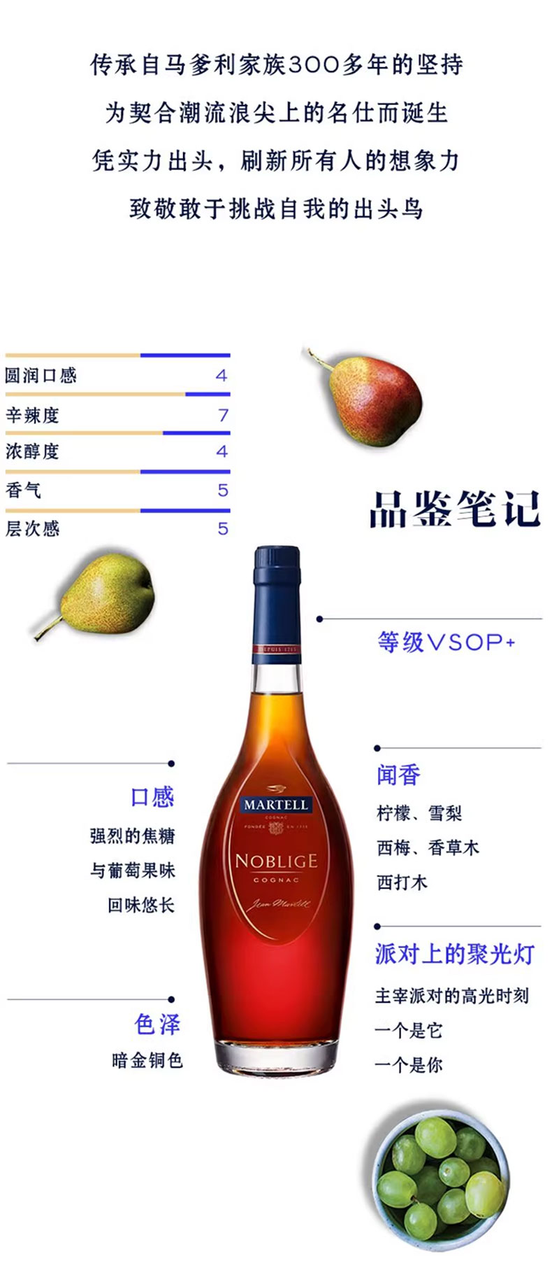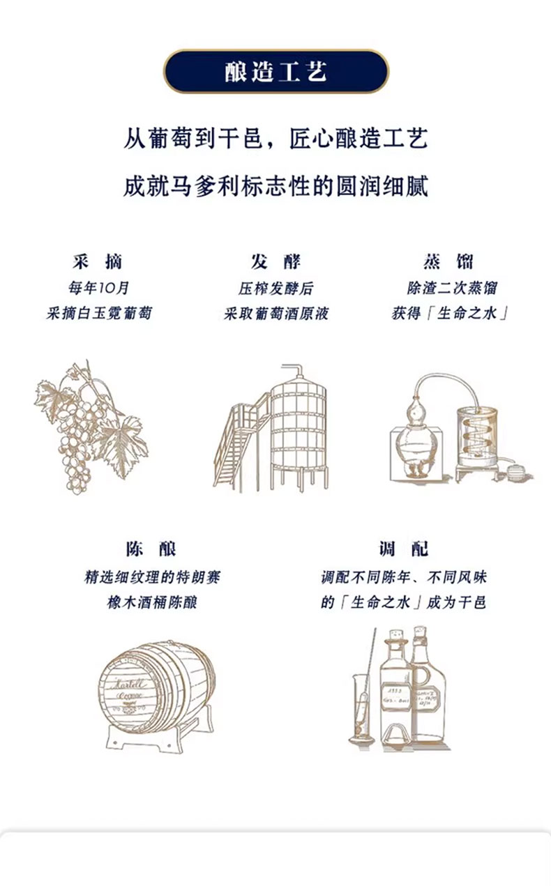 马爹利名仕是法国保乐利加集团出品,它的诞生是为了向马爹利的经典致敬,同时也是为了传承马爹利的奢华精神。