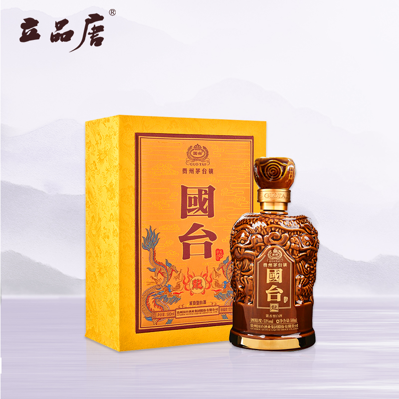 国台龙酒产自贵州省茅台镇国台酒业旗下的酱香型年份酒,国台龙酒产自中国酱酒核心产区茅台镇,其酒体设计,出自中国酱香酒大师李兴发的嫡传弟子徐强之手。国台龙酒采用精美的陶瓷瓶体,可以更好地存放白酒,既有窖酒效果,又使酒越陈越香。国台龙酒瓶身上设计了精美的双龙纹饰,古朴大方,配合鎏金卡扣,体现了品位和文化底蕴。在外包装上,国台龙酒采用龙袍专属的赭黄色。