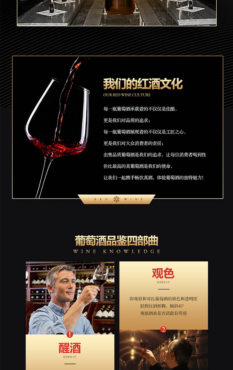 采用传统酿造、经过葡萄采摘处理、破碎压榨、发酵、混合调配、橡木桶中陈酿熟化等环节
