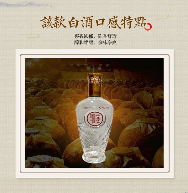 帝王经典是宜宾五粮液股份有限公司出品,采用传统固态发酵酿造工艺,层次丰富、醇厚绵柔、酒体饱满、余味悠长。价格亲民、性价比很高、不管日常品饮,还是朋友聚会,都是很好的选择。